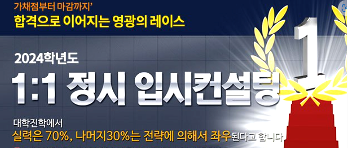 "정확한 분석과 예측, 원서접수 마감까지 동행합니다" ( 안녕하세요, 스카이멘토링입니다 :) 가채점부터 마감까지! 합격으로 이어지는 영광의 레이스! 다 같은 점수라도 어떻게 컨설팅 받느냐에 따라 가는 곳이 달라질 수가 있죠. 끝날 때까지 끝난 게 아니다는 말이 존재하는 것처럼 우리 친구들의 입시의 끝이...